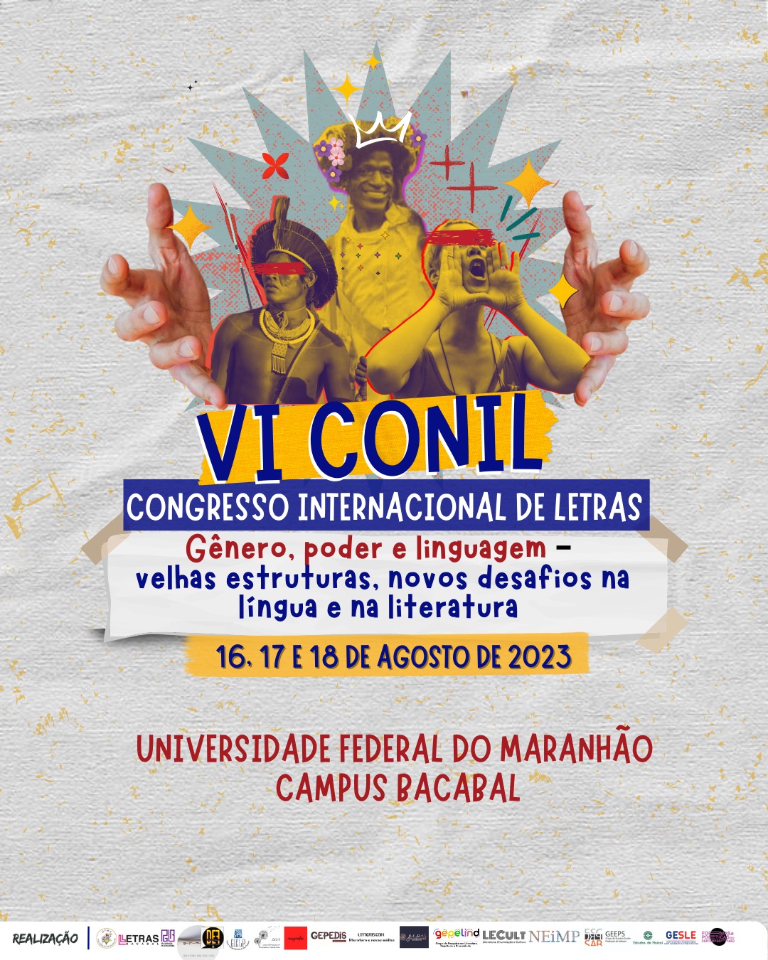 O Congresso, nesse sentido, busca apresentar um conjunto de produções acadêmicas e culturais (conferências, apresentações de comunicação oral, atividades culturais, publicações de anais e cadernos de resumos etc) que estudem e deem destaque para o fenômeno da visibilidade dos discursos acerca do tema em debate. Como um grande espaço de escuta e partilha de saberes, o VI CONIL também conclama outros temas de pesquisas tanto na área de linguística quanto na de literatura para que possam apresentar ideias, resultados de pesquisas, discussões no grande campo das ciências humanas e sociais.